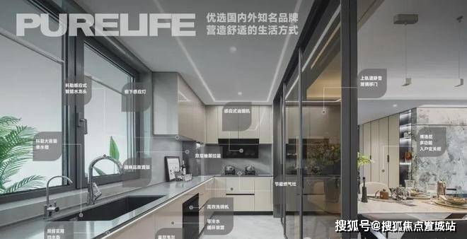 厨卫也都是拿得出手的,方太厨房四件套(燃气灶+油烟机+蒸烤一体箱+洗碗机)、唯宝的台盆、科勒的花浇水龙头号(或平等品牌)。